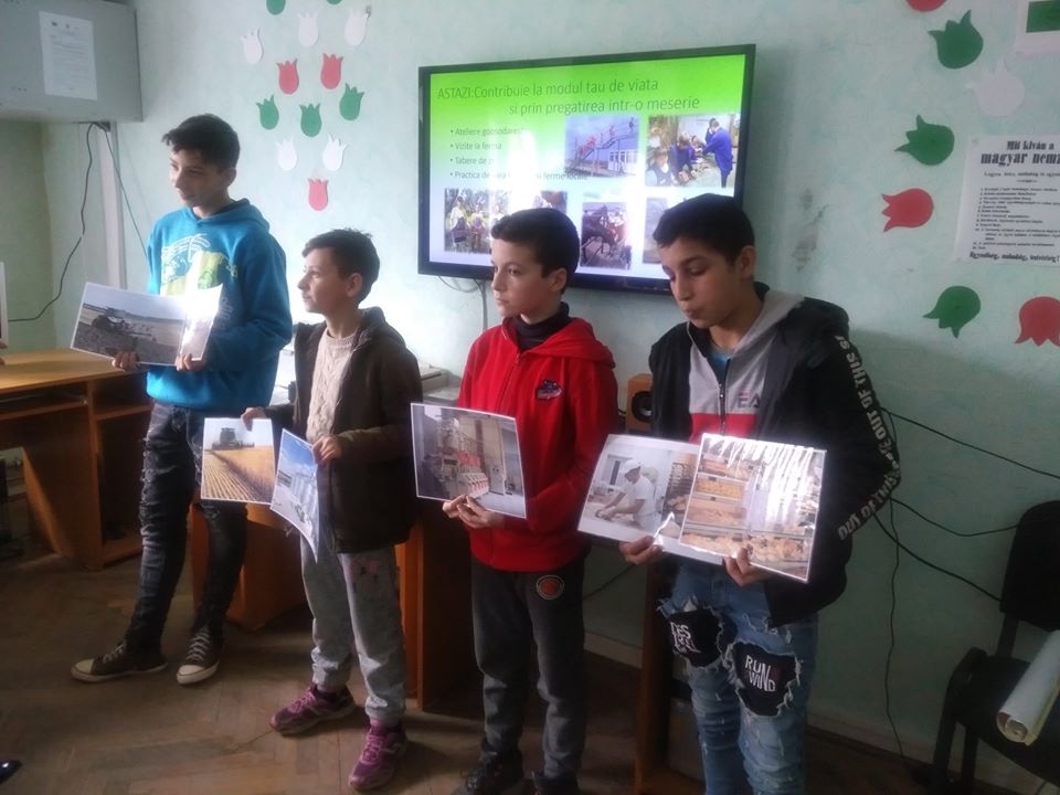 Die Mitarbeiter der Fundatia Hans Lindner stellten den Schülern interaktiv durch einfache Aufgaben die Berufe unseres Kreises vor. Gleichzeitig erhielten die Schüler Antworten darauf, wie sie sich für den gewünschten Beruf vorbereiten und bewusste Entscheidungen auf der Grundlage ihrer eigenen Kompetenzen und realen Fähigkeiten treffen können.