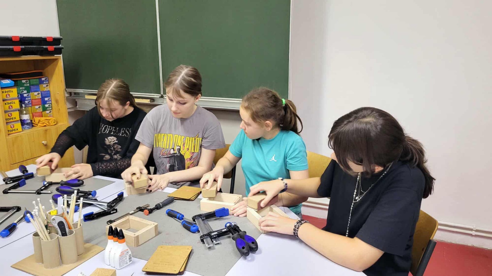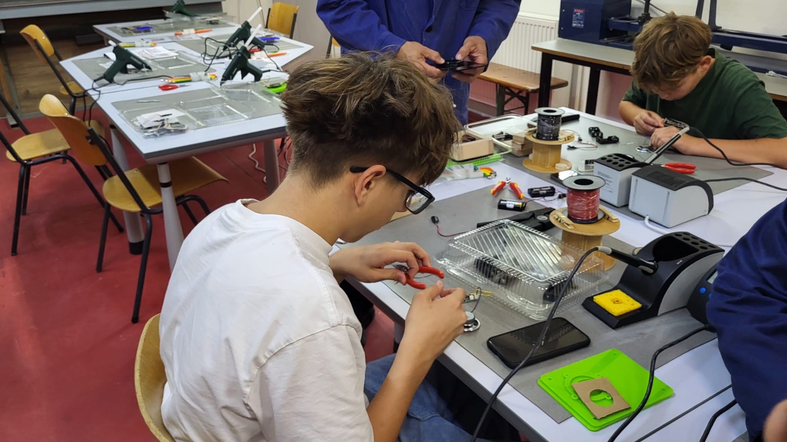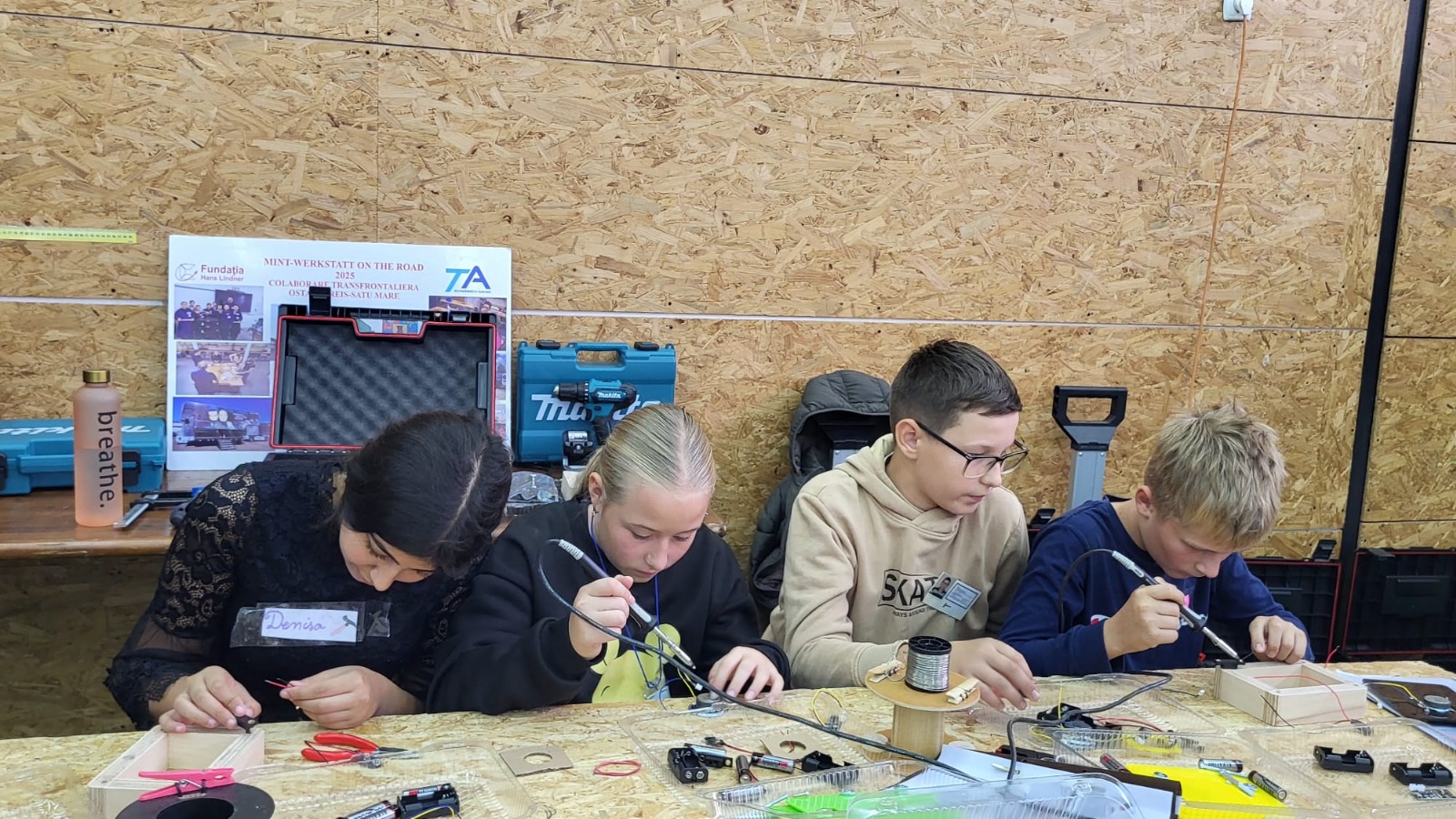 Sunt oferite aproape toate resursele necesare: ateliere fixe și mobile, unelte, materiale, planuri desenate și sprijinul meșterilor fundației. Activitățile sunt variate și complexe – elevii lucrează cu lemn, metal, plastic și componente electronice. Astfel, au ocazia să descopere materiale și tehnici de prelucrare și asamblare, dar și să experimenteze bucuria de a crea obiecte utile, pe care le pot lua acasă.