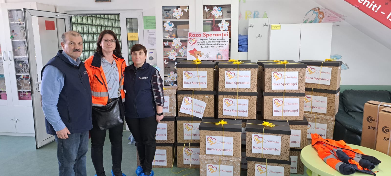 35 ajándékdoboz került átadásra a „Ion Chiricuța”Gyermekonkólógiára, illetve 15 csomag a 2-es számú Gyermekklinika hematológiai osztályára. Mindkét helyen személyes találkozásokra is sor került az orvosi és a pszichológiai szakszemélyzettel: Kerekes Anita osztályvezető főnővérrel, Corina Somlea pszichológussal, valamint BotaMădălina (szatmári származású) főorvosnővel. Mindkét helyen megegyeztek abban, hogy a Hans Lindner Alapítvány feltétel nélkül folytatja támogató elköteleződését az ügy iránt, teljes mértékben egymásba kapaszkodnak, segítik és erősítik a szülőket a teherviselésben, és minden cselekedetük által, együtt erősítik a reményt.