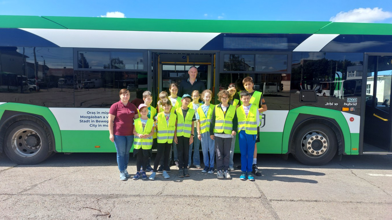 Városunk tömegközlekedési vállalata , a Transurban RA korszerű hibrid autóparkjával, szerelőkkel, buszvezetőkkel ismerkedett az Aktív vakáció program gyerekcsapata. Nincs olyan gyerek, aki ne szeretné legalább egyszer kipróbálni, milyen érzés egy ekkora járművet vezetni. Az autóbuszok rajongója, lelkes vezetőnk volt ezen a napon Pop Stefan úr, aki a gyerekek ezer kérdésére adott választ, a takarítástól a karbantartásig, a jegyvásárlástól, a kártyás fizetésen át a végsebességig, a buszvezetök vagy a jegyellenörök viselkedési szabályairól érdeklődve. Látogatásunk után biztosan az is felül majd az egyik járatra, akinek csak egy saroknyi távolságot kell megtenni. Megéri a tömegközlekedést választani, megéri hozzájárulni a környzetet megóvásához, megéri a közügyekért dolgozni, ehhez illö szakmát választani.