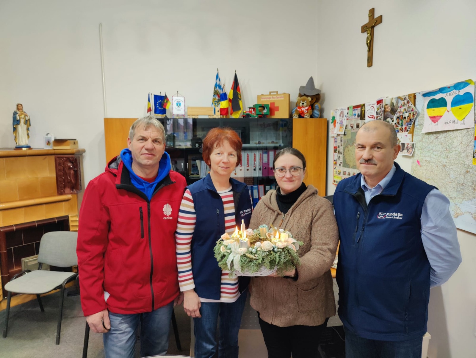Nagy segítségükre volt ebben a” Szent Márton Karitász Kárpátaljai Megyei Jótékonysági Alapítvány” és annak igazgatója, Fehér Ferenc, hisz ők tudják a legjobban kinek és mire van ma a legnagyobb szüksége. Alapítványunk anyagi támogatásával 80 család számára készítettek karácsonyi szeretetcsomagokat, melyek alapvető élelmiszereket tartalmaztak és ezeket a helyi Karitász munkatársai juttatták el a rászorulókhoz. Fontos megemlíteni azt is, hogy minden terméket helyi termelők készítették, így az anyagi támogatás kétszeresen segítetett a helybélieknek. A Hans Lindner Alapítvány továbbra is figyel a szükségekre és helyi partner-szervezetével közösen segít a kereszt hordozásában.