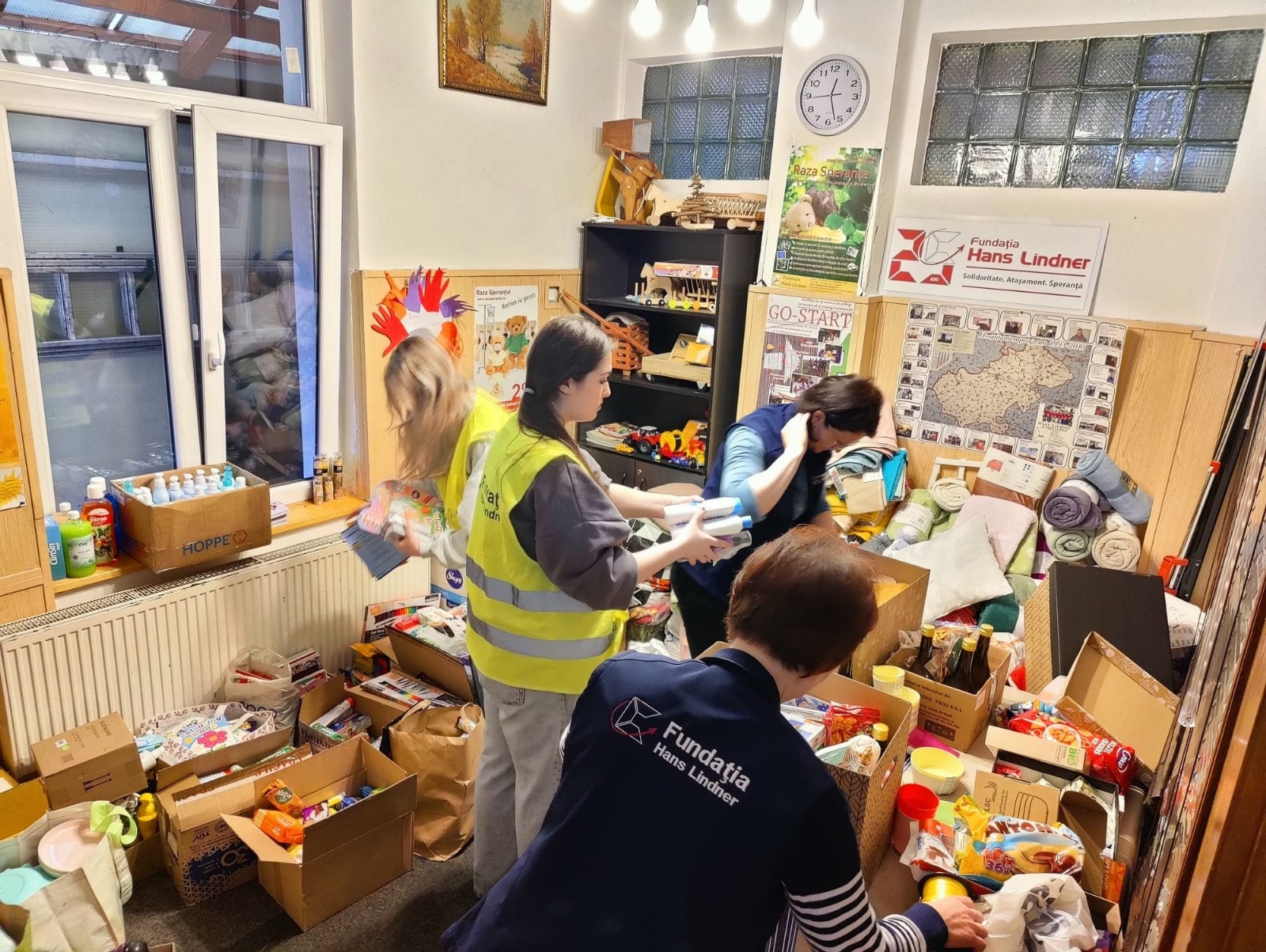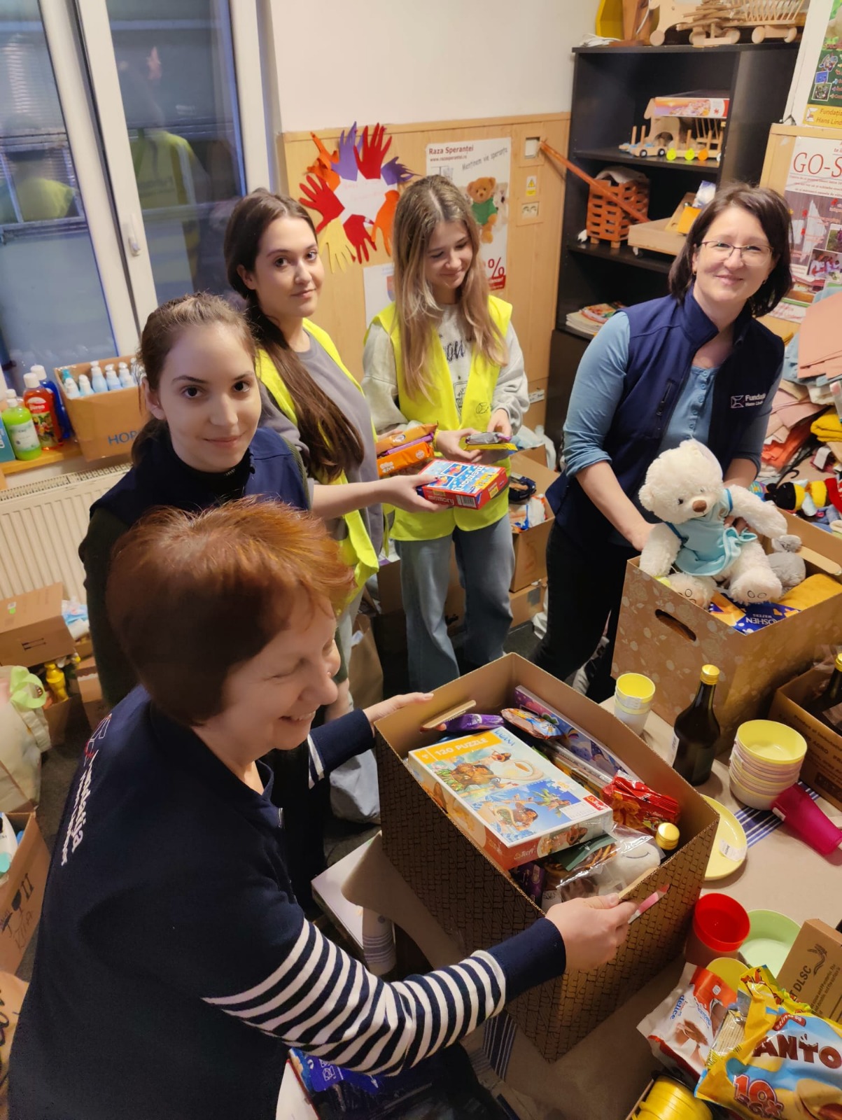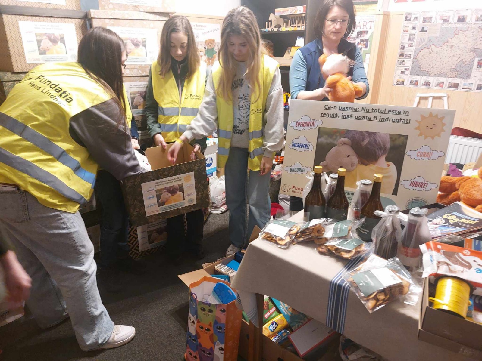 Az adományok megérkeztek az alapítvány székhelyére, itt szintén számos önkéntes diák díszes dobozokba tette az ajándékul küldött édességeket, higiéniai termékeket, sok-sok játékot, takarókat, melyeket jövő kedden juttatnak majd célba az önkéntes diákság küldöttsége által.