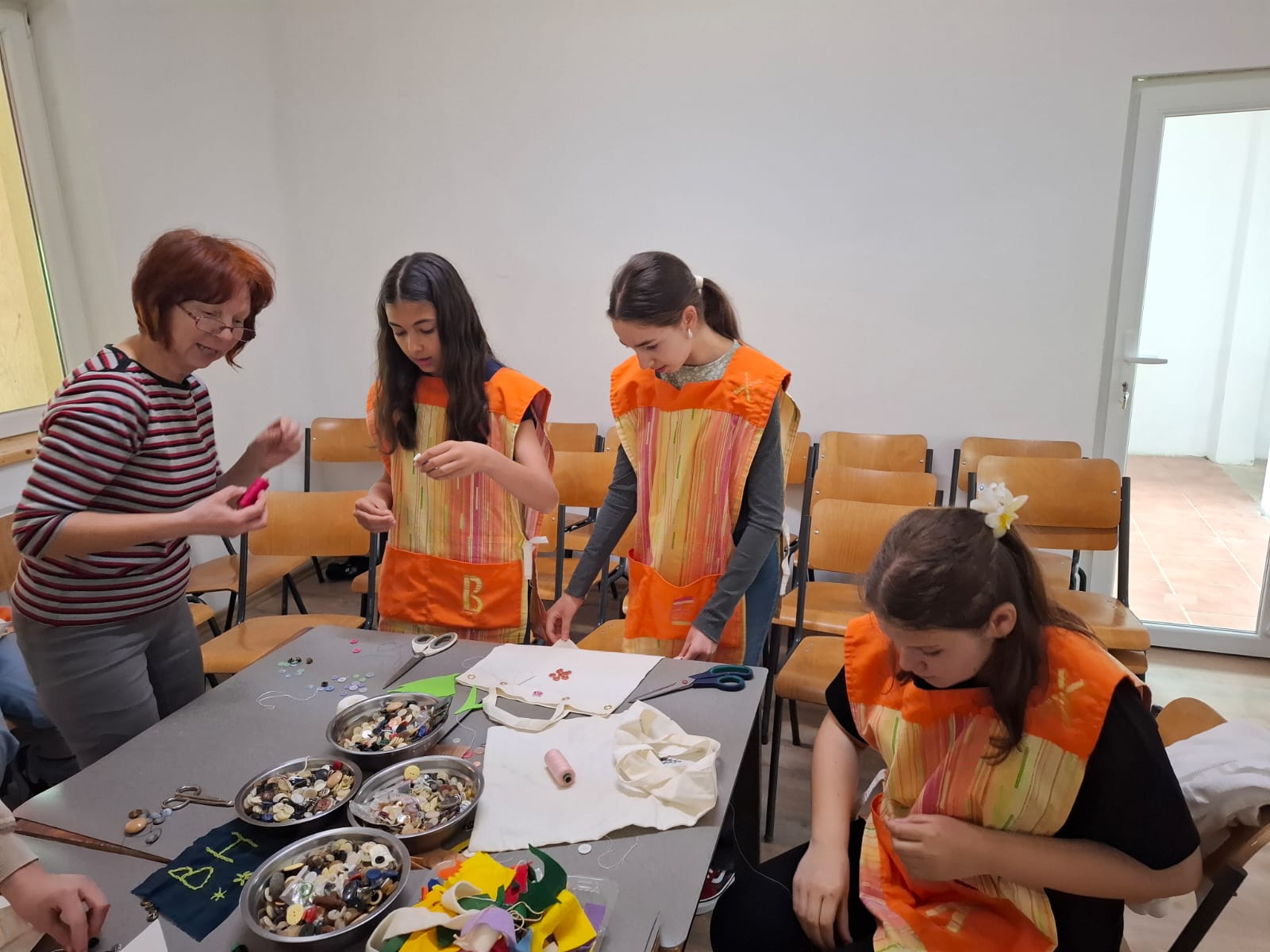 A bemutató után gyakorlatok következtek, melynek során a dákok kiscsoportokban, több munkaponton, mesterek útbaigazításával tevékenykedtek. Voltak, akik vászontáskákat alakítottak kedvük szerint és díszítettek, mások bicikliszereléssel, ajtózárak és villanykapcsolók beszerelésével foglalatoskodtak, a konyhában pedig házi süteményeket készítettek. Aztán a csoportok helyet cseréltek azért, hogy a diákok több gyakorlatot is kipróbálhassanak.